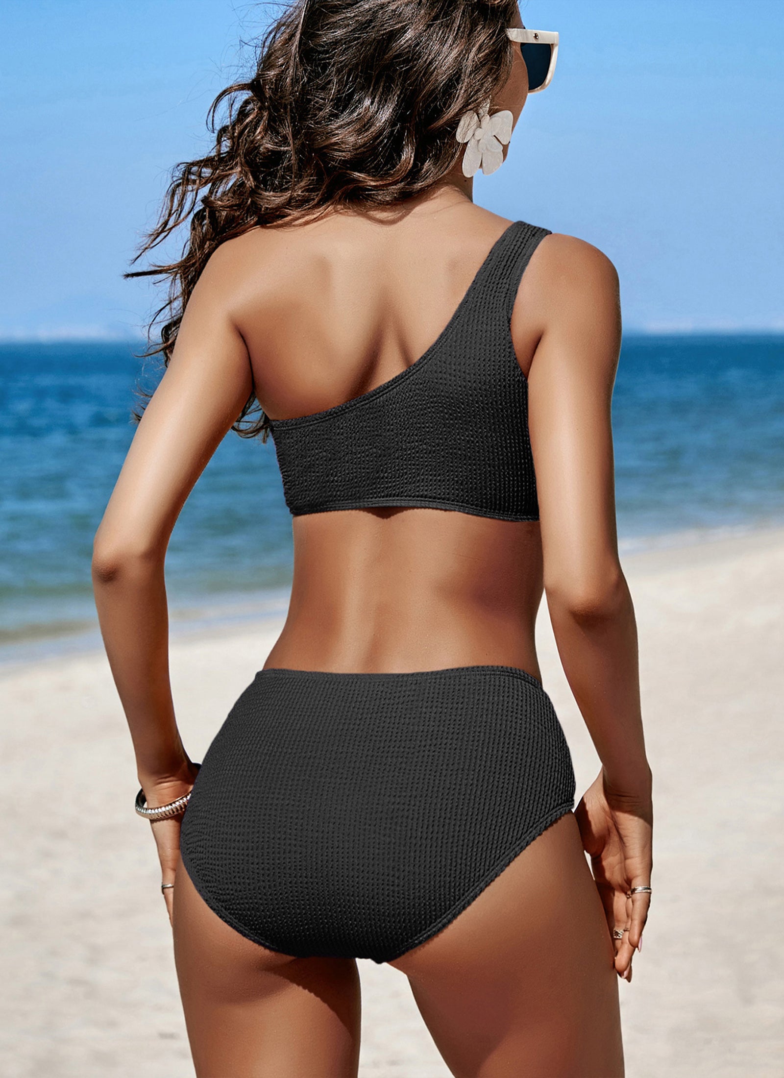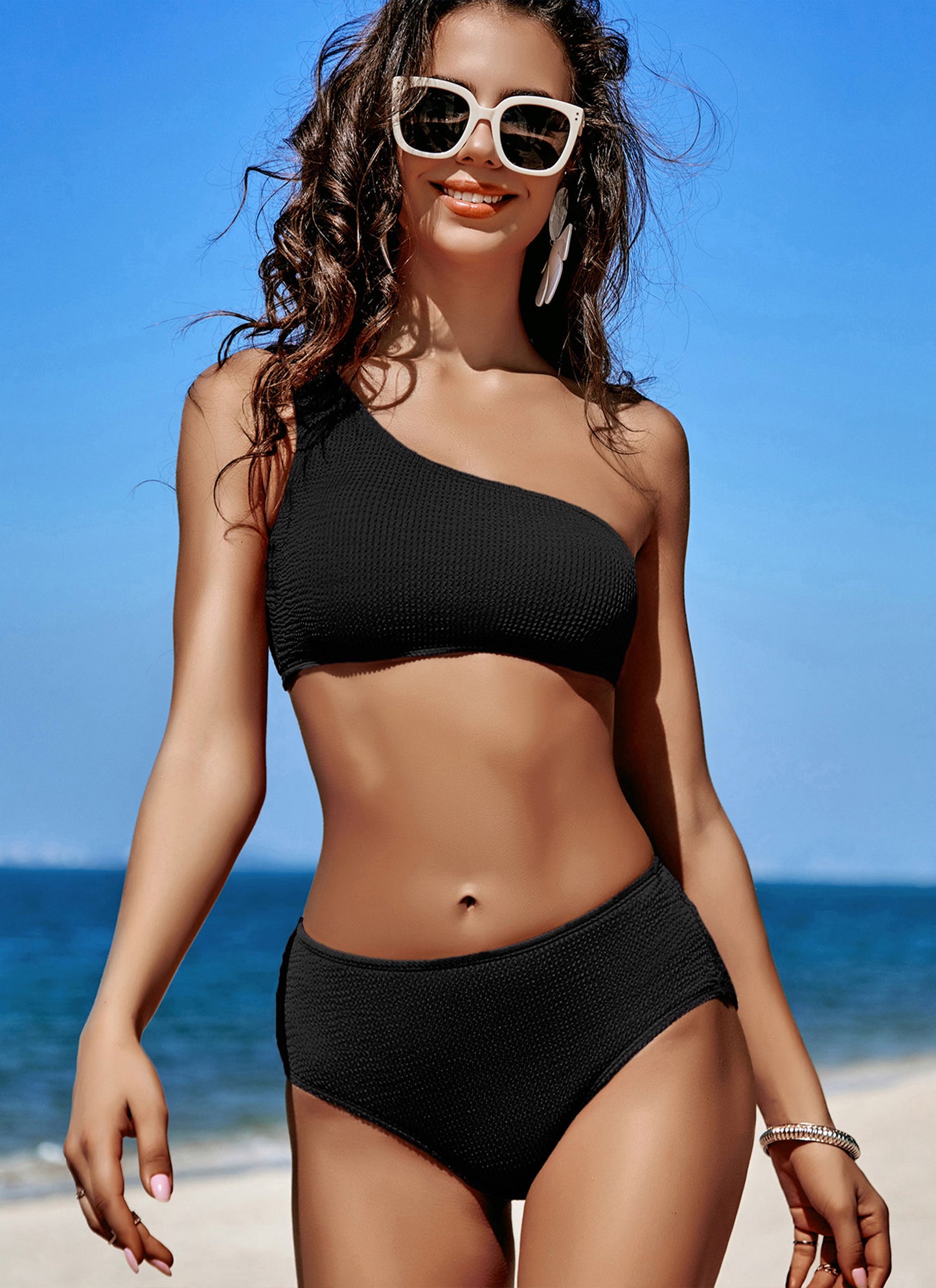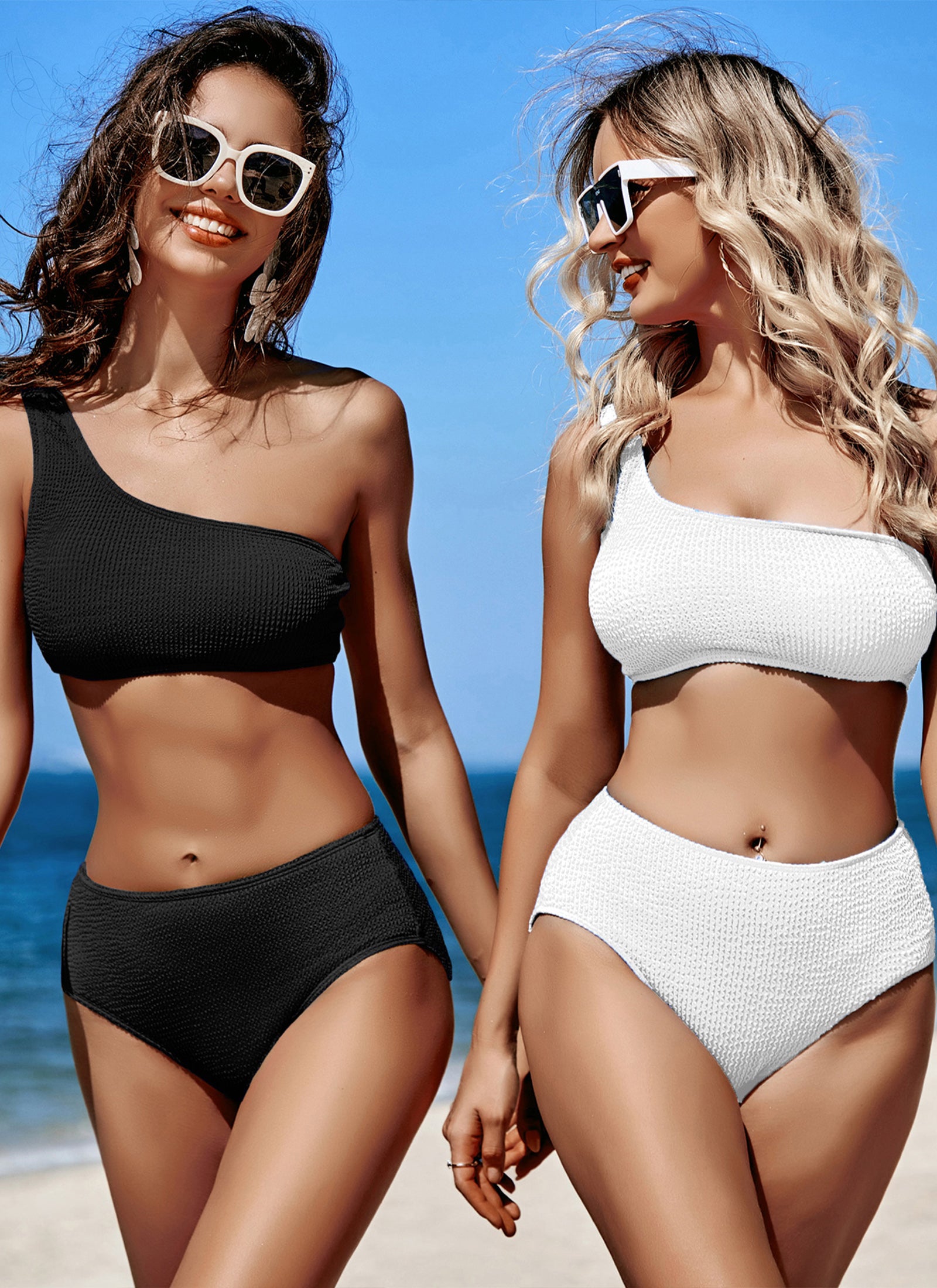 2、Ribbed Crop Styled One Shoulder Bandeau Bust Top
