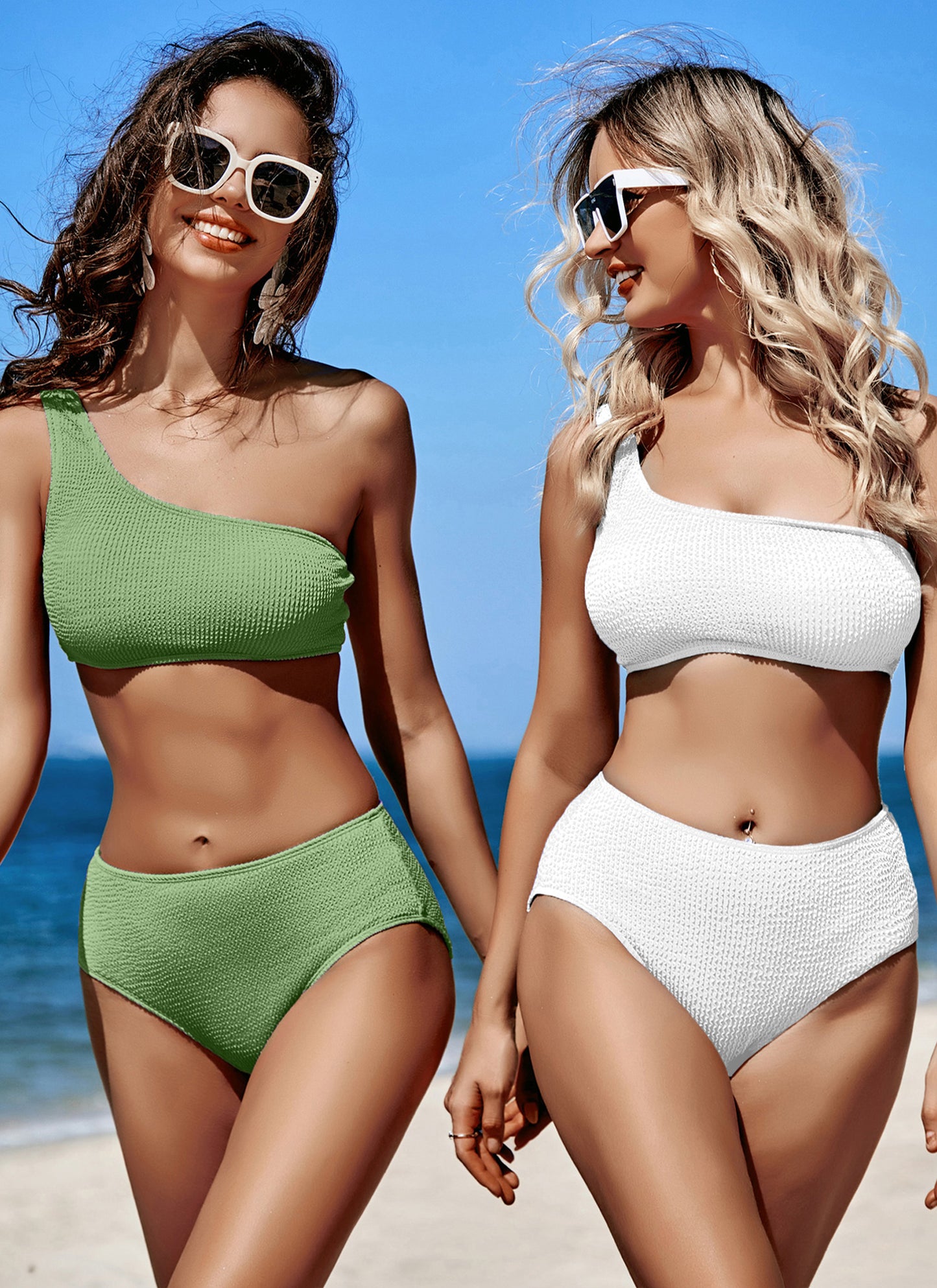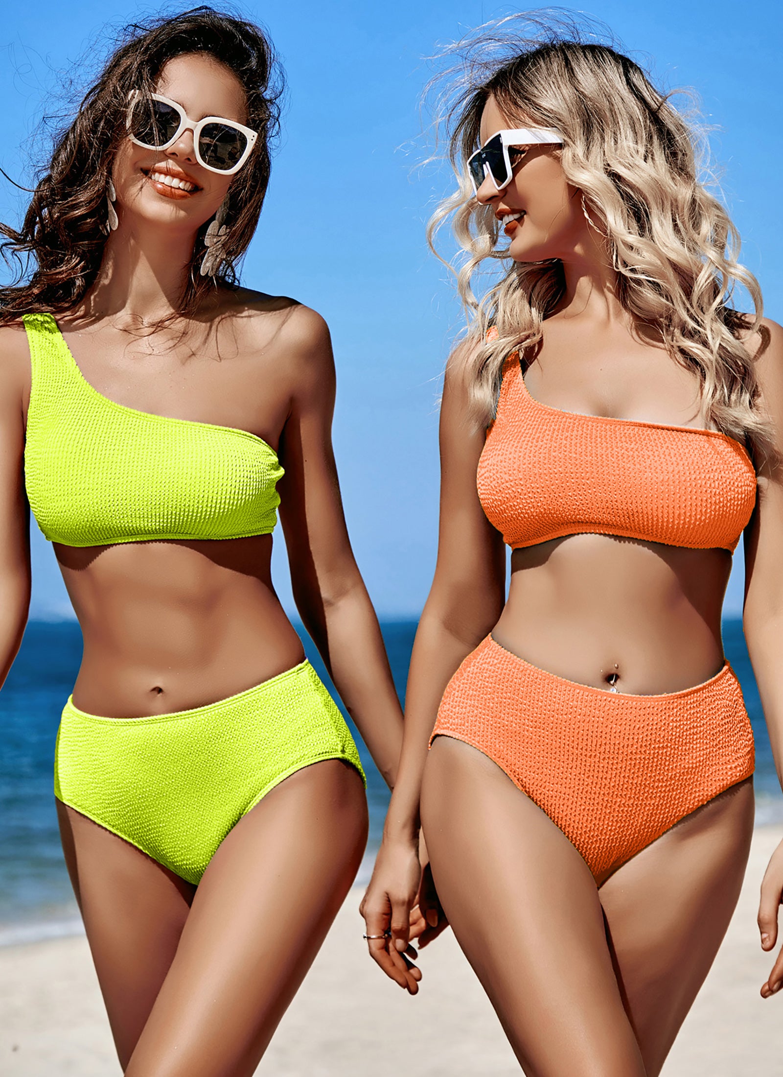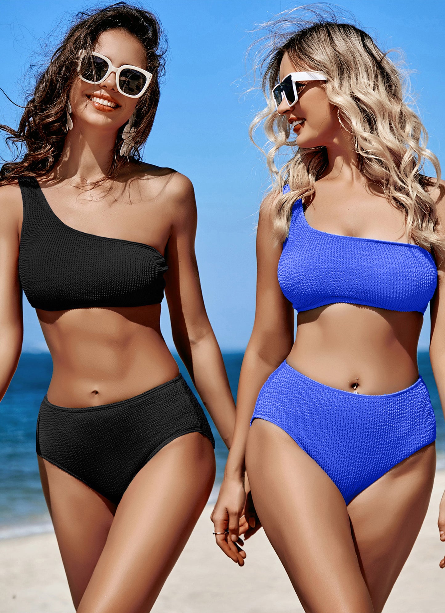 2、Ribbed Crop Styled One Shoulder Bandeau Bust Top